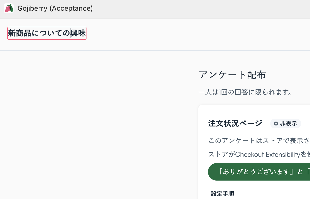 アンケートを有効化すると、ステータスが「実施中」に変わります。
